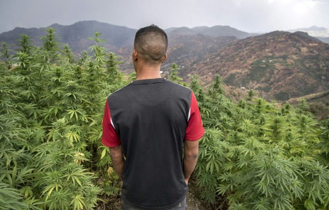Not far from Hicham’s local cafe, a vast terraced cannabis plantation sprawls up a nearby mountain.