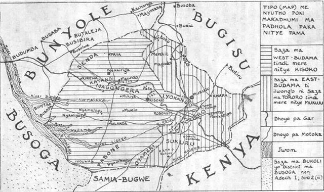 Jopadhola later on interacted, sometimes violently with neighboring ethnic groups that had settled in the region, for example the Gisu, Nyole, Soga and later the Iteso who were pastoralists looking for pasture and water. The first groups of Iteso arrived around 1810-1840 and settled in Kwapa. With time, the number of Iteso increased especially in the eastern part of Budama.