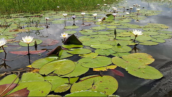 As we continued gliding effortlessly, Will kept pointing toward yellow water lily stems rising elegantly from the shallows. “Here we see both night and day water lilies,” he explained. “There are those that are active between six in the morning and six in the evening.”
