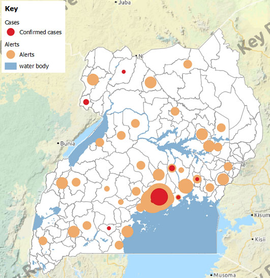 I also want the country to know that we have a nationwide system of responding to reports of suspected cases. We have village health monitoring teams that inform the about 100 hubs (health centres) once a case is suspected. The hubs have capacity to take samples which are then sent to Entebbe for testing.