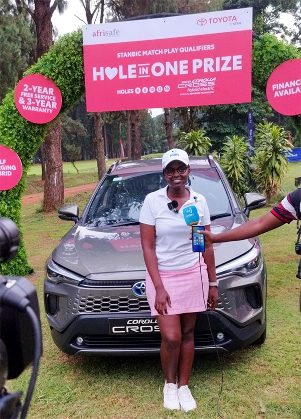 Berna Musanabera etched her name into the record books after delivering a flawless hole-in-one on the 12th hole to claim an Afrisafe-insured Toyota Corolla Cross Hybrid that had been staked as the day’s grand prize. With that remarkable ace, she became not only the first female golfer but the first golfer in the history of the Stanbic Match Play series to win a hole-in-one car prize.