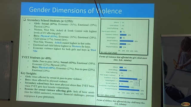 The information was released during the dissemination of the National violence against children baseline survey report for the safety and protection of Children under the Uganda Secondary Education Expansion Project (USEEP).