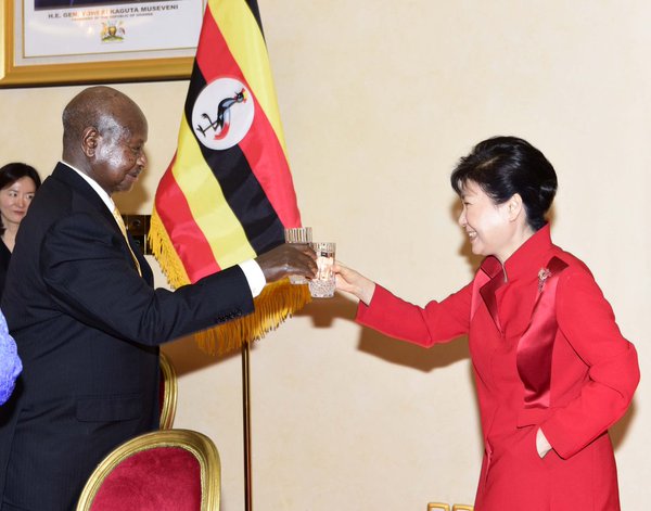 This was after President Yoweri Museveni officially welcomed the President of South Korea Park Geun-hye for her first state visit to Uganda.