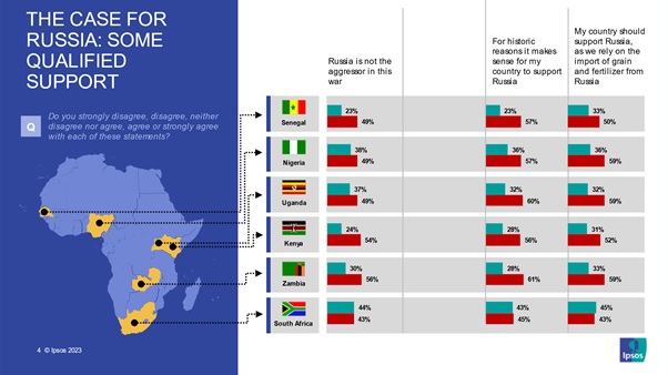 Kampala, Uganda | THE INDEPENDENT & AGENCIES | Ahead of the African Peace Initiative visit to Kyiv and Moscow on June 15-17, the upcoming Russia/Africa meetings in St. Petersburg, and the BRICS Summit in South Africa in August, international research company Ipsos polled African citizens on their attitudes towards Russia, Ukraine and the controversial position on the war taken by some African governments.