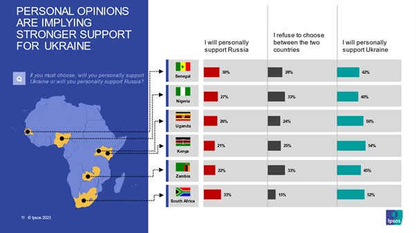 Finally asked to make a personal choice there was definitely little ambiguity, and a majority in both Kenya and South Africa supported Ukraine. Substantial proportions in the other countries followed suit.