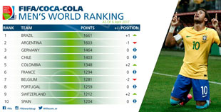 Read More »Brazil up to second, Uganda 73rd in World FIFA rankings