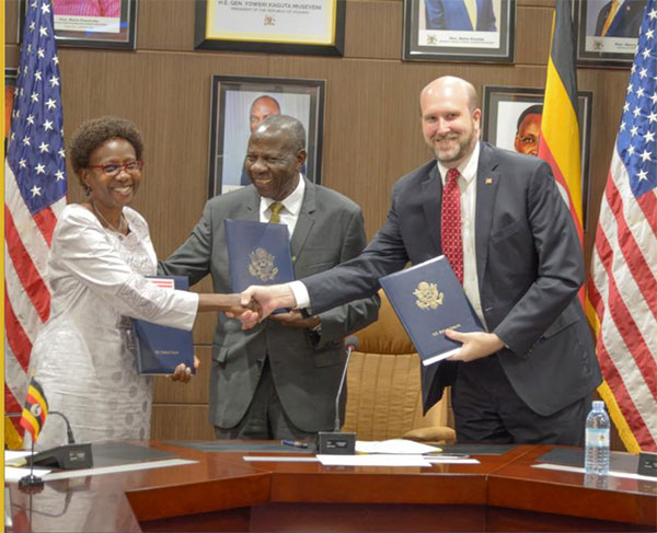 Ambassador William W. Popp speaking at the signing ceremony with the Minister of Finance, Planning, and Economic Development Matia Kasaija, said, “This agreement represents a significant commitment by the United States and Uganda to co-invest in our shared global health priorities. Today, we are building on prior successes and making a significant shift toward promoting self-reliance in the health sector through strong community health systems, clear performance metrics, and a foundational commitment to data systems and global health security that will prevent and stop outbreaks from threatening Uganda, the United States and the world.”