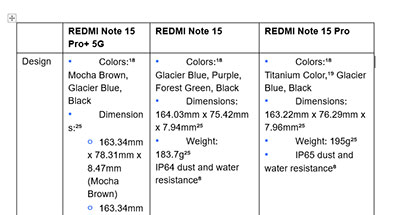 REDMI Note 15 Series Quick Specs